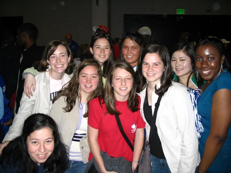 Diane, Codi, CeeCee, Cathy, Emma, Kyndal, Meghan, Linh, and me at the basketball game in B-ham.