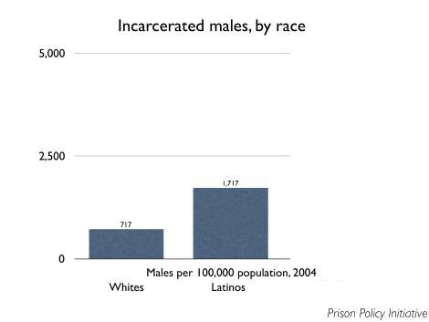 During their life time, Latino men are four times as likely to be sentenced to prison as non-Hispanic White males. 4