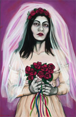 Laura Molina is a more recent Latina artist who explores gender roles in her artwork. She gives this statement for why she paints, “As an educated, native-born, English-speaking, fifth generation Mexican-American and a feminist, there is almost no reflection of me in the movies or television, which is almost as bad as being stereotyped. My paintings make my own statement…By becoming the stereotype I also break it, because as the artist I have control of the image and what conveys to the viewer” 7.