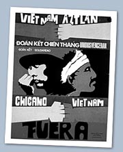 This poster, created in 1972 by artist Malaquias Montoya, addresses the political struggles discussed above. Not only were Chicanos suffering discrimination, poverty, and police brutality at home, but they were dying in disproportionate numbers in Vietnam. The author is also making an appeal to solidarity between Chicanos and Vietnamese. http://www.kqed.org/w/snapshots/images/photo_05_01.jpg