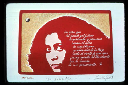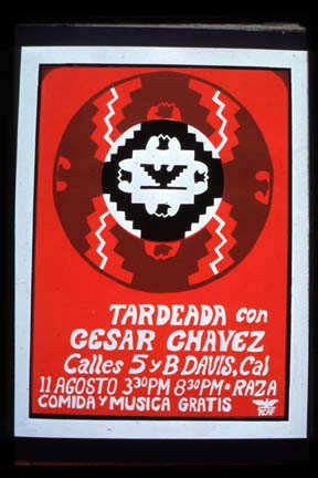 Welcome to our Gallery These eleven pieces of art reflect common themes of the Chicano movement. They are all silk screen posters, a medium of art which was widely used in the movement because of the ease and relatively cheap cost of mass reproduction. These posters were meant to be accessible to all the population, utilizing bold, powerful words and images which conveyed a wealth of meaning. Especially popular were depictions of historical figures important to Chicano history such as Pancho Villa, Che Guevera, and Cesar Chavez. Many of these images were produced in connection with the Royal Chicano Air Force, which is a Sacramento based organization founded in 1969 with the purpose of making art available to the Chicano community. 31 To take a tour of the gallery, click the link above or one of the thumbnails below: