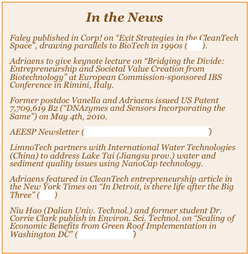 As President of the Association of Environmental Engineering and Science Professors (AEESP), I am working with my Board of Directors on a strategic initiative aimed at integrating economic incentives in in the environmental science and engineering research agenda and entrepreneurial value creation (see President’s Strategic Initiative draft.doc).