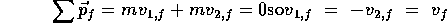 A very straightforward elastic collision is one for which two equal mass objects are moving toward each other with velocities of equal magnitude and opposite direction. The outcome, it should be no surprise, is that after the collision, they move apart having only exchange velocities, that is the final velocity of each is just the negative of its initial velocity. Momentum conservation and conservation of KE provide two equations with two unknowns (the final velocities of each object). We can use momentum conservation for the one dimensional case as follows: