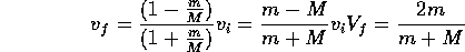 This is general result produces the results discussed above for equal mass objects when m=M, so that