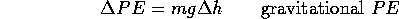 Now that the book is at the height of 1 m above the floor, having had some work done to get it there, the energy used can be converted to kinetic energy by dropping the book. When the book is dropped, its velocity and KE increase as it falls until it hits the floor with a bang or a splat. In the process of hitting the floor the Kinetic Energy is converted into other kinds of energy such as heat, sound and perhaps some work that permanently deforms the shape of the book. Before the book is dropped, the work done in lifting it is stored. This stored energy is available for conversion into KE, heat energy, sound energy, etc. We often call this stored energy Potential Energy or position dependent energy: PE. It is also properly called gravitational potential energy (to distinguish it from electrical potential energy) and, as we'll define it soon (Lecture 16), in terms of the change of gravitational binding energy.