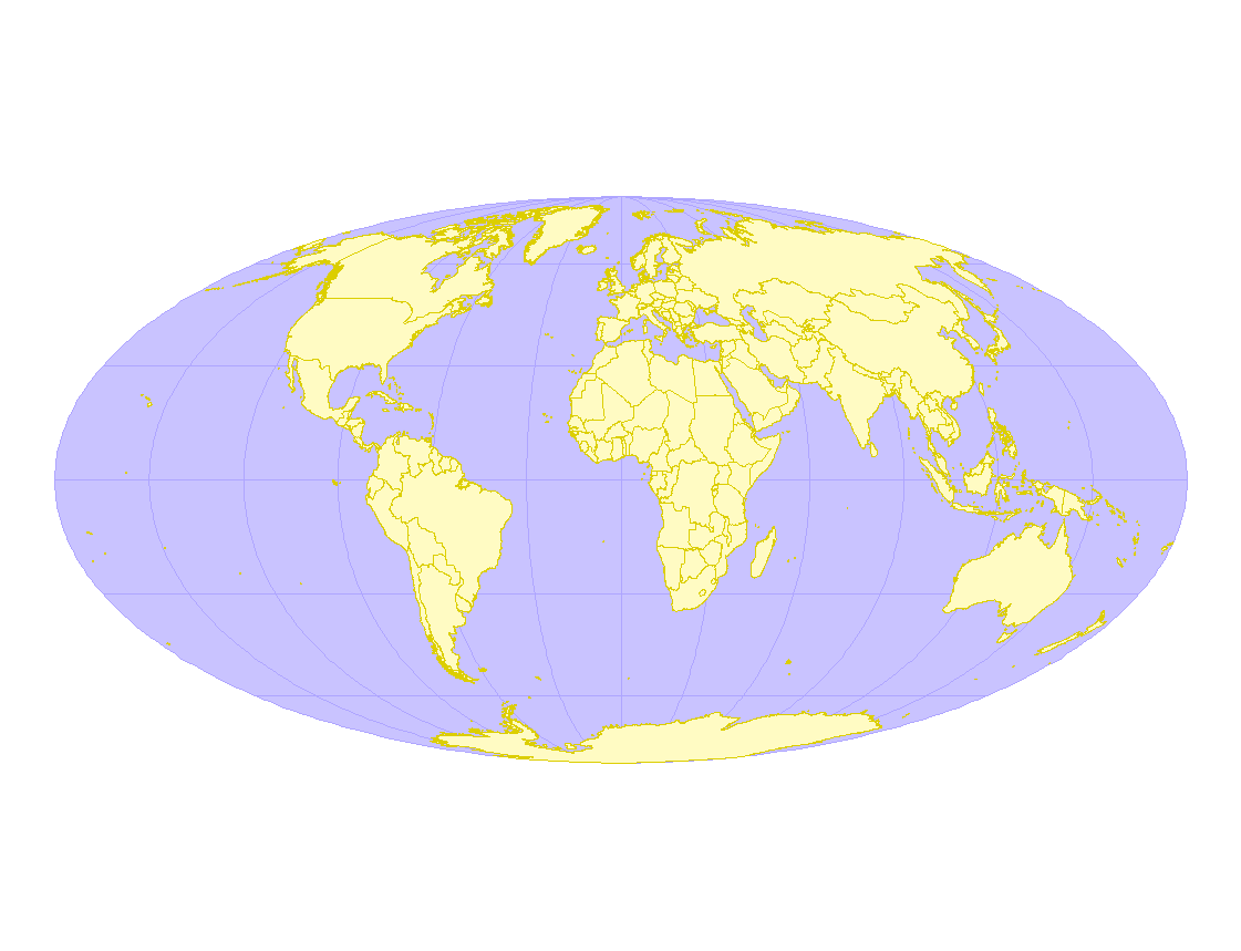 Equal area Mollweide projection showing countries with citizens who have received a Nobel award; the darker the shading, the more awards received. |