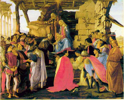 Adoration of the Magi. For example, the man kneeling before the baby is Lorenzo de