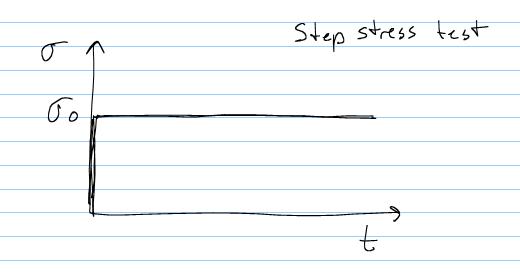 Similar to the stress relaxation, we can define a creep function J(t) by dividing the strain versus time reponse by the initial unit step stress. This gives the creep function Jas: