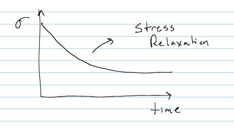 Note that the stress completely relaxes out over time. This is actually characteristic of a viscoelastic fluid rather than a viscoelastic solid. Finally, we note that the ratio m/E gives us a dimension of time. This is a characteristic time of the material denoted as the relaxation time, and defined as: