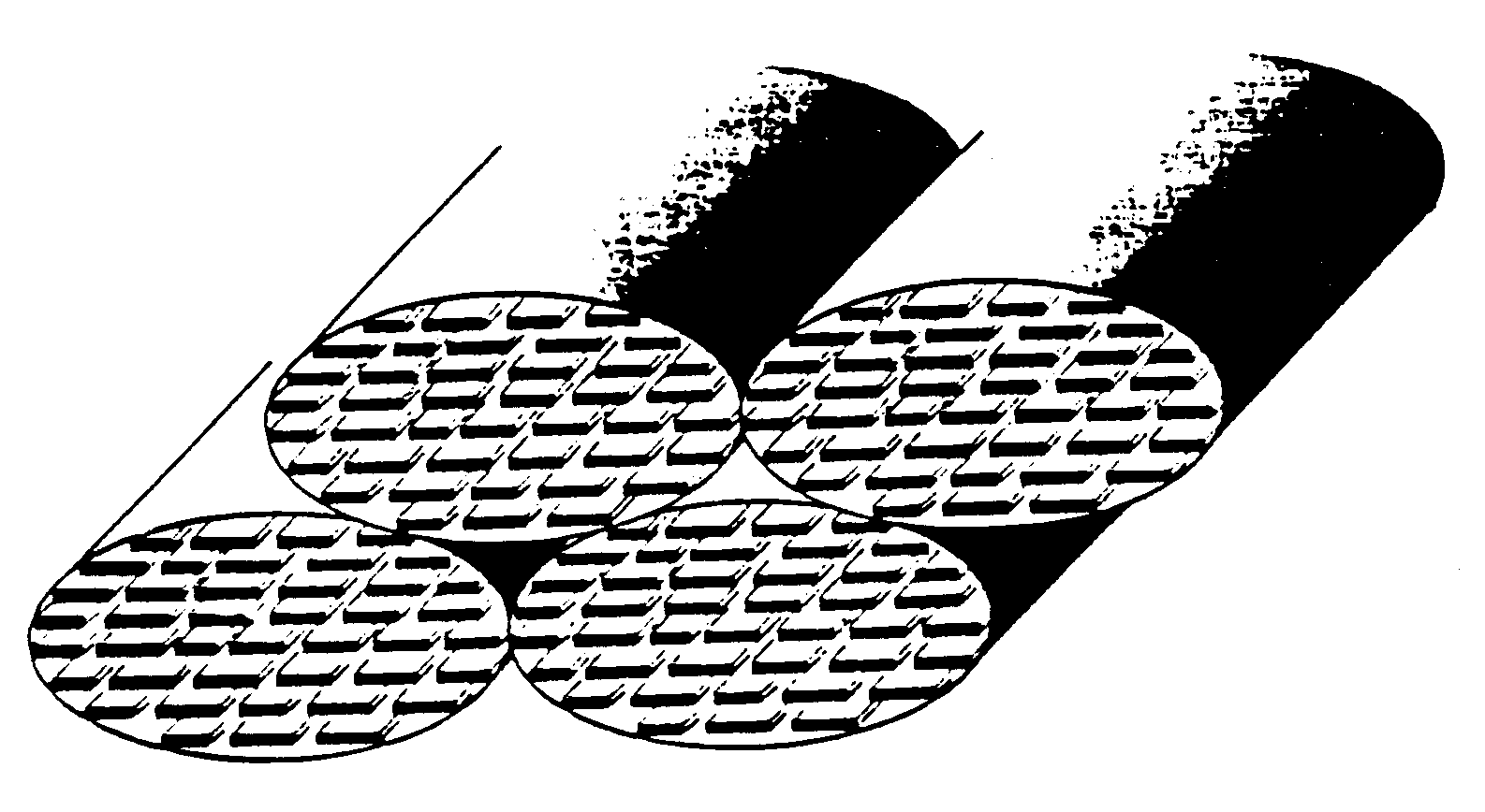 A very thorough review of bone structure (as thorough as possible) from the angstrom level (mineral crystal) to the micron level (lamellae) was recently presented by Weiner and Traub (1992). In that work, Wiener and Traub reviewed mineral structure, the mineral collagen composite, and how the mineral collagen composite fit into lamellae. Collagen fibers, with a typical length of 0.015 mm, or .000015 mm, and a length of 3 mm, or .003 mm, packed together form collagen fibrils. Within the packing of the collagen fibers are distinct gaps sometimes called hole zones (Fig. 14). The structure of these holes is currently the focus of some debate. In one model, the holes are completely isolated from each other. In another model, the holes are contiguous and together from a groove about 0.015 mm thick and .370 mm long. Within these holes mineral crystals form. The mineral crystals in final form are believed to be made from a carbonate apatite mineral called dahllite which may initially resemble an octacalcium crystal. The octacalcium crystal naturally forms in plates. These mineral plates are typically 0.25 by 0.5 mm in length and width and have a thickness of 0.02 to 0.03 mm. It is these plates which are packed into the type I collagen fibrils. Because of the nature of the packing, the orientation of the collagen fibrils will determine the orientation of the mineral crystals. One such model is provided by Weiner and Traub (shown in Martin et al., 1998):