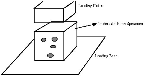 A great deal of work has been done to measure the 0th level mechanical properties of trabecular bone which result from its 1st level structure. Many investigators would characterize trabecular bone on the 0th level as an orthotropic material. Many measurements of trabecular bone stiffness at the 0th level have only characterized the axial stiffness of trabecular bone. This is because of the difficulties involved in measuring orthotropic properties. Trabecular bone 0th level stiffness and strength are a function of its 1st level structure. Many studies have therefore related measures of first level structure including density or volume fraction of trabeculae and orientation of trabeculae to 0th level trabecular stiffness. The stiffness of trabecular bone has been found to range anywhere from 1 to 1000 MPa. The ultimate strength of trabecular bone has been found to range between 0.12 MPa to 310 MPa (Goldstein, 1987). Thus, trabecular bone tends to exhibit a much wider range of stiffness and strength than cortical bone, perhaps due to the large variations in both the density and organization of 1st level structure inherent to trabecular bone. Many investigators have tried to find a correlation between density and trabecular bone stiffness and density and trabecular bone strength. In general, equations of the form: