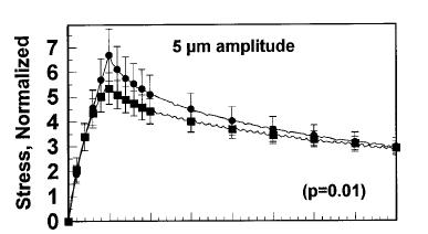 Just as viscoelastic materials exhibit time dependent response, so do biphasic/poroelastic models. In fact, the time dependent behavior of stress under a step strain and strain under a step stress is very similar to a viscoelastic material. Under a step strain, a poroelastic/biphasic material will undergo stress relaxation as shown below: