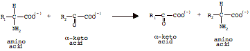 2. The amino group on glutamate can be transferred back to another keto-acid if needed by reversing the above reactions. A specific enzyme in liver mitochondrial matrix (Glutamate-aspartate aminotransferase) catalyzes exchange of amine groups between glutamate and aspartate. (Reaction depicted further down)