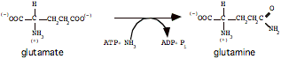 b. Incorporate the ammonia on a separate glutamate to form glutamine (enzyme: glutamine synthetase):