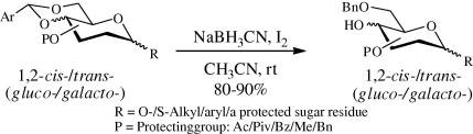 This is high yield reductive ring opening that uses slightly different reagents however the key component (BH3) is still present.