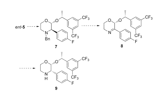 The researchers of this fabulous publication in the Journal of Organic Chemistry discovered an efficient process of producing molecule 9 in high yield. They realized that a Lewis Acid catalyst was essential to this chemical synthesis. The intelligent scientists connivingly conducted a transformational trans-acetalization synthesis reaction of molecule 7 to produce intermediate imine 8 which then was modified to produce a meaningful molecule, which is labeled as compound 9 in the above reaction scheme. A Lewis Acid catalyst is essential to this synthesis reaction in order to produce the desired product with the correct stereochemistry. In the reaction scheme that is shown above, a Lewis Acid catalyzes the tantalizing transformation of molecule 7. This prominent process produces imine 8. Then, the chivalrous chiral center is inverted in imine 8 through a horrendous hydrogenation process. This yields the fantastic final product, product 9.