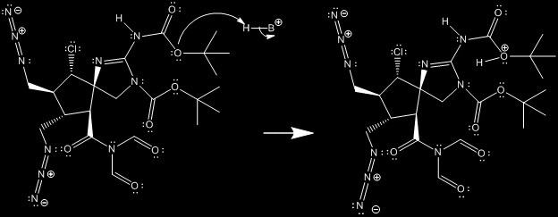 Every accomplished driver must not only know his car inside and out, but each part of the race track must be understood as well. Thus, it is absolutely imperative to understand the mechanics behind the reaction at each step in the mechanism. At the Crooner Curve, we observe the first part of the Boc deprotection in the molecule.