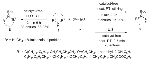 Within this paper, an interesting method of using ultrasound to conduct chemical reactions is utilized. The ultrasound would act as a substitute that is more sustainable and environmentally friendly than organic catalysts. Thus in this paper, Banarjee conducts several experiments with this unique method of organic synthesis. One of these reactions, Banarjee utilizes di-tert-butyl dicarbonate, commonly referred to as a Boc anhydride in order to protect the amine group to which the di-tert-butyl dicarbonate is attached to. Banarjee does this with several different protected amines and notes a respectable seventy-seven and eighty-five percent yield. To study the anion interactions and position within the avidin protein, eight anions needed to be formed; the first part of the procedure to form these anions required the Boc-protection of the amino acid proline. This paper used the procedure outlined in the original paper to perform the Boc-protection of proline, which is why it cited the original paper.