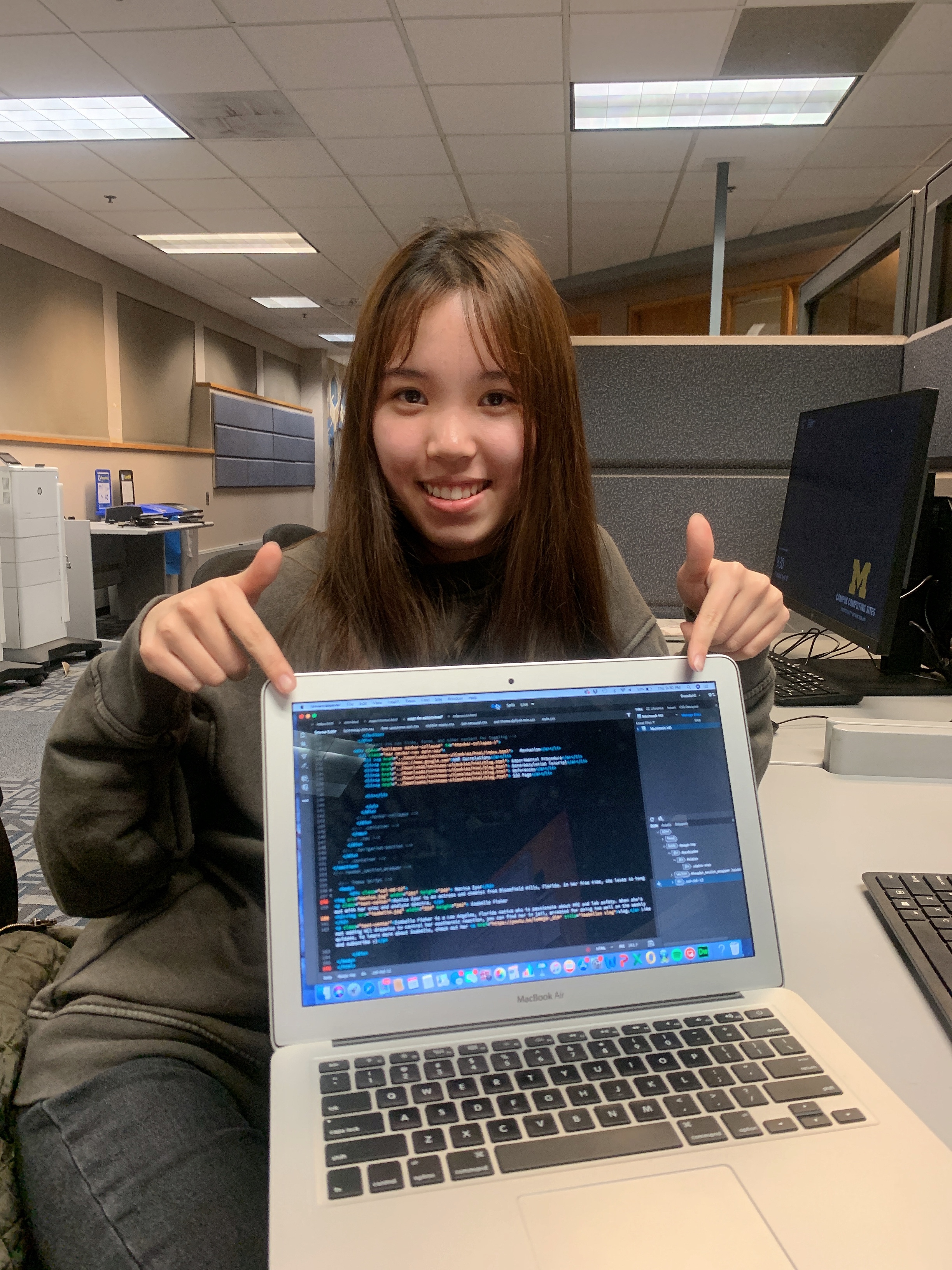 Ran Jin (Rachael) went from no coding experience in html to master in 2 days. Not only she is now a computer science genius, but she's also a "sophomore" in a major with a six letter acronym. Go on, guess (Hint: It starts with Cellular and Molecular Biology and ends with Biomedical Engineering). Rachael's pride and joy is her adorable cat Monday who travelled here with her from Lakewood, Florida.