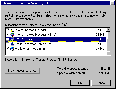 Uncheck SMTP Service and make sure the NNTP Services is also unchecked. Then press OK.