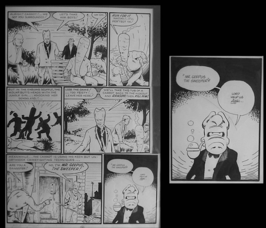 " Flaming Carrot #18: Dark Horse, 1988, Cerebus in one panel on Page 25. Also reprinted in FlamingCarrot trade paperback #3. p. 203."