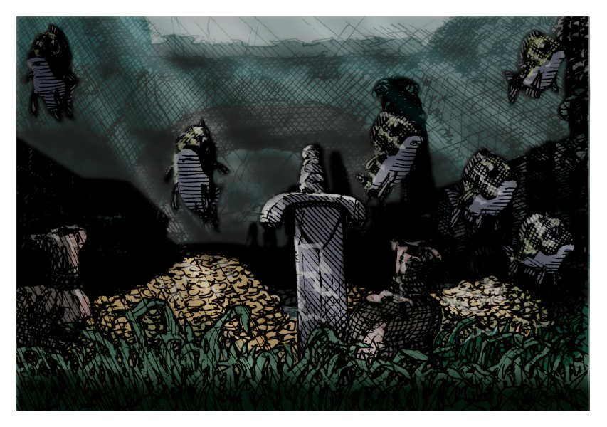 On his 27th birthday, the bottom fell out and he floated away. The gold and the sword did not.