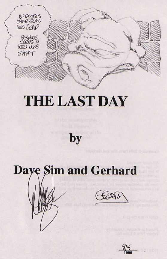 Dave Sim threatens to dip the edge of "The Last Day" into the decaf coffee.