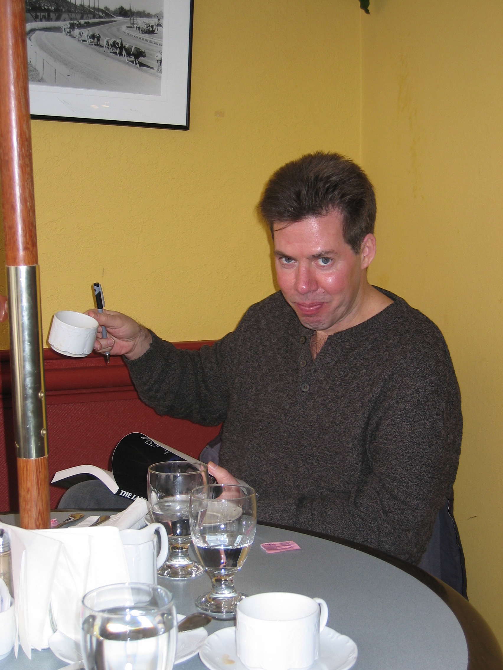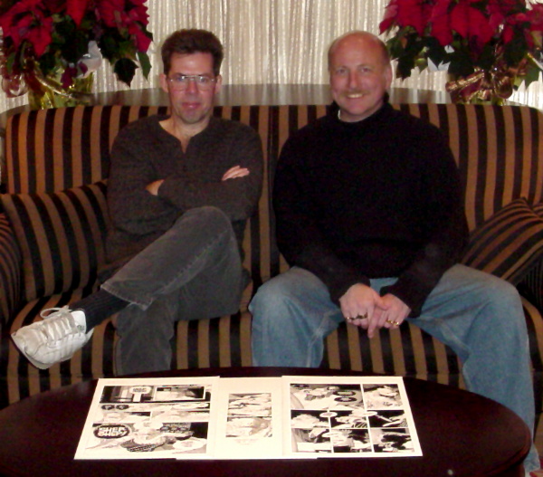 Dave Sim threatens to pour decaf coffee onto the copy of "The Last Day" in which he is sketching.