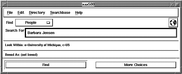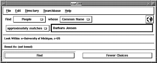 xax500's Main Window can be configured in a "Fewer Choices" mode and a "More Choices" mode. In "Fewer Choices" mode, xax500 examines what the user types and formulates an appropriate search. In "More Choices" mode, the user can specify exactly what type of search is done by manipulating the popup menus.