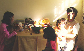 My dad said: " I knew some English so it was not a problem. The sponsors did everything possible to make our home complete from the small details like bandages and toys to clothing and a car. They came to take us to see doctors, took all of you to register for school, and took us shopping every week. They even opened up a bank account for us." My mom was overwhelmed by the supermarket and everything that was available. The sponsors however did not know what we liked to eat so for the first few weeks we ate what they bought and cooked. I remember my parents saying how unsavory and strange the thick green pea soup was, but they could not force themselves to waste anything and throw it away. Next to where my dad was sitting is the door to the backyard where we hung our laundry to dry. I remember one day when my dad came in the kitchen grinning from ear to ear and holding in his hands a frozen pair of jeans. It was our fist experience with Michigan winter. |