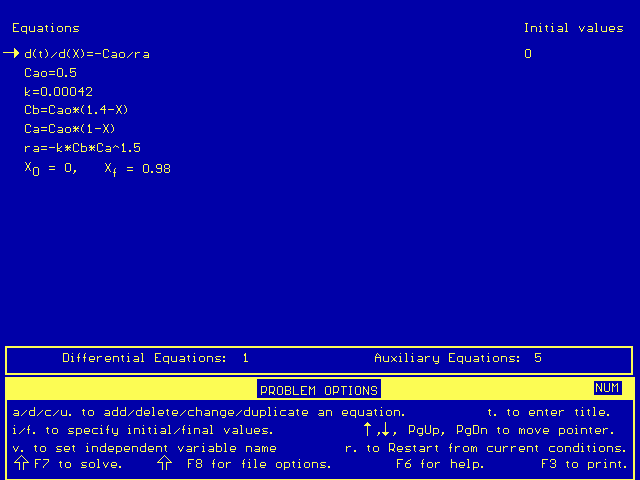 This equation can only be solved numerically, unless you really enjoy integration. The Polymath simultaneous differential equation solver may be used to solve the problem quickly and easily. The Polymath equations used should look like this: