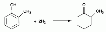 Alkylated cyclohexanols are important intermediates in the fragrance and perfume industry [ Ind. Eng. Chem. Re., 28, 693 (1989)]. Recent work has focused on gas-phase catalyzed hydrogenation of o-cresol to 2-methylcyclohexanone, which is then hydrogenated to 2-methylcyclohexanol. In this problem we focus only the first step in the reaction. The reaction on a nickle-silica catalyst was found to be zero-order in o-cresol and first order in hydrogen with a specific reaction rate at 170°C of 1.74 mol o-cresol/ (kg cat min atm). The reaction mixture enters the packed-bed reactor at a total pressure of 5 atm. The molar feed consists of 67% H2 and 33# o-cresol at a total molar flow rate of 40 mol/min.