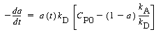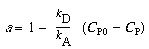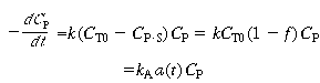 | where k A =kC T0 is the initial total concentration of unpoisoned site, C P•S is the concentration of the poisoned sites, and ƒ is the fraction of the poisoned sites. Taking the ratio of Equation (10-111) to Equation (CD10-4.1) |