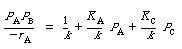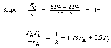 Compare runs 2 and 7. PA and PC are fixed. increases by a factor of 10 when PB increases by a factor of 10. PB is only in the numerator. ![]() |