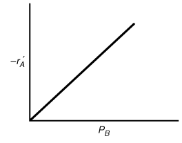 (a) Sketch as a function of PA , as a function of P B , and as a function of P C. (b) From your observations in part (a), which species would appear in the numerator of the rate expression? Which species would appear in the denominator of the rate expression? To what power is the denominator raised?