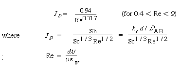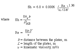between 5 and 20 m/s are not uncommon. The mass transfer coefficient can be calculated from the correlation |