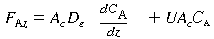 the cross-sectional area normal to the direction of gas flow. The rate of surface reaction is equal to mass flux to the surface. Taking the surface concentration equal to zero for mass transfer-limited reactions gives |