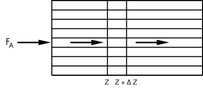 A. Catalyst MonolithThe previous discussion in this chapter focused primarily on chemical reactions taking place in packed-bed reactors. However, when a gaseous feed stream contains significant amounts of particulate matter, dust tends to clog the catalyst bed. To process feed streams of this type, parallel-plate reactors (monoliths) are commonly used. Figure R11.1-1 shows a schematic diagram of a monolith reactor. The reacting gas mixture flows between the parallel plates, and the reaction takes place on the surface of the plates. In deriving the design equation we carry out a balance on a differential section of the reactor (Figure