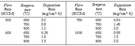 | Lead titanate, PbTiO3, is a material having remarkable ferroelectric, pyroelectric, and piezoelectric properties [J. Elec. Chem. Soc., 135, 3137 (1988)]. A thin film of PbTiO3 was deposited in a CVD reactor. The deposition rate is given below as a function of a temperature and flow rate over the film. | ||