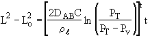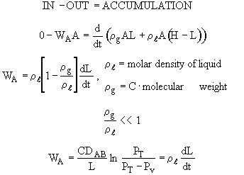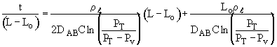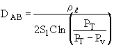 The height of the gas-liquid interface, L, can easily be measured with a cathetometer. A plot at t/L–Lo vs. (L–Lo) should yield a straight line of slope S from which the diffusivity can be calculated from the equation