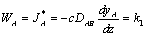 Applying Fick's Law with (WA + WB) = 0 gives: