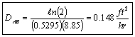 and 1 atm. DAB = 2.37 ft2/hr by noting the time it took for the internal concentration to fall to 20
