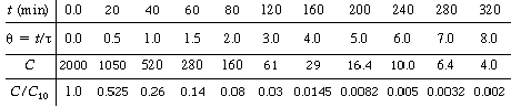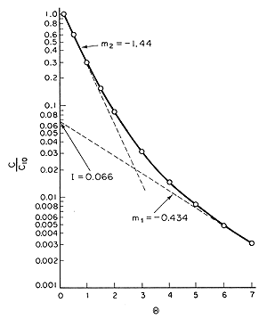 Plotting the ratio C(t) /C 10 as a function of on semilog coordinates, we get the graph shown in Figure