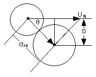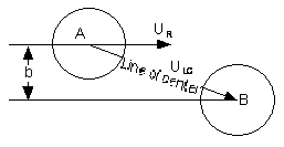 The impact parameter, b, is the off-set distance of the centers as they approach one another. The velocity component along the lines of centers, ULC, can be obtained by resolving the approach velocity into components.