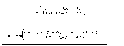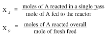 Two conversions are usually associated with recycle reactors: the overall conversion, X0, and the conversion per pass, Xs : | ||