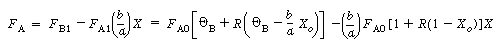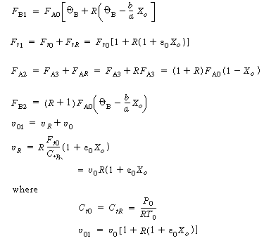 | From the definition for conversion per pass, we can define F A2 and F B3 leaving the reactor, | |||