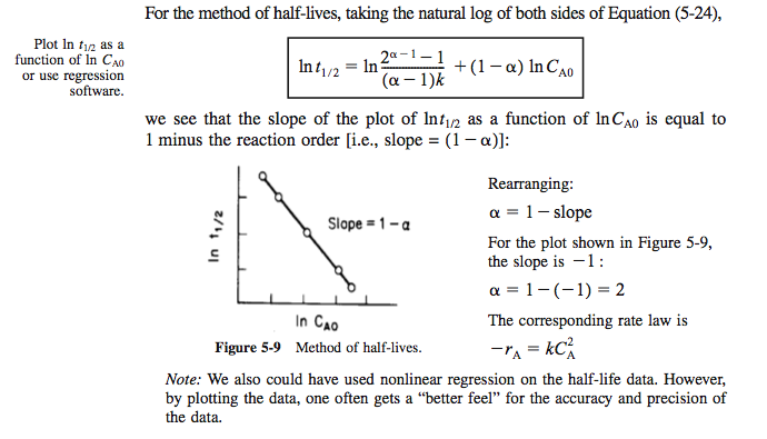 The following information is taken from the 4th edition of Elements of Chemical Reaction Engineering, so the equation numbers correspond to those found in that bookR7.2 Method of Half Lives