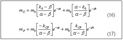 where mc and mp are the mass of drug (e.g., milligram) in the central and peripheral compartments, respectively. These equations are easily solved by recognizing that the one of the form to