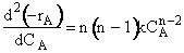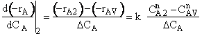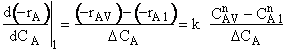 | Figure 13.3-4 shows the rate of reaction as a function of concentration. We want to find the second derivative of rA at the average concentration, CAV |