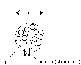 A schematic of a g-mer of diameter dg made up of g monomers (aluminum molecules) each with diameter d1 is shown below.